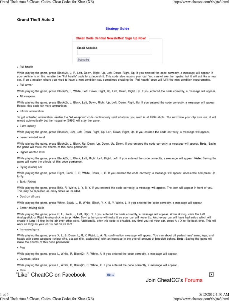 Grand Theft Auto 3 Cheats Codes Cheat Codes For Xbox Xb