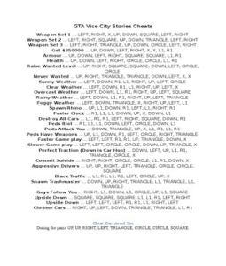 Cheat Codes For Gta Vice City Stories Psp